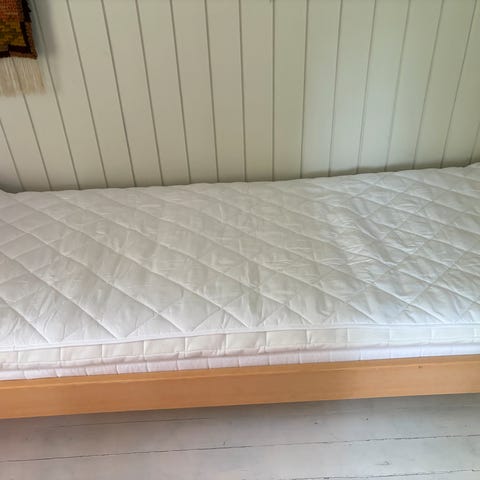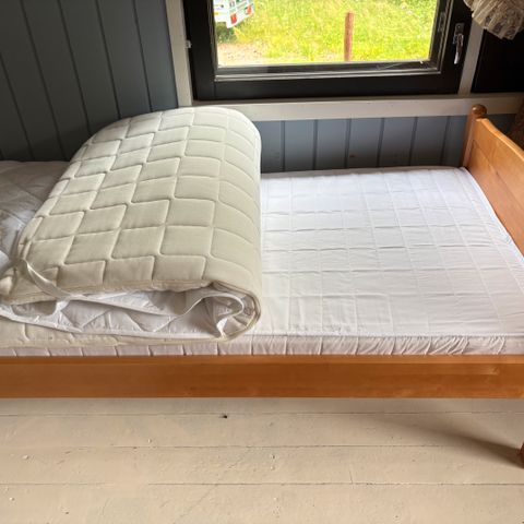 134-150cm jatkettava. Alle 10kertaa nukuttu patja ja petari tulee mukaan, ne ovat 134cm. Muita mittoja voi kysellä.