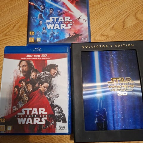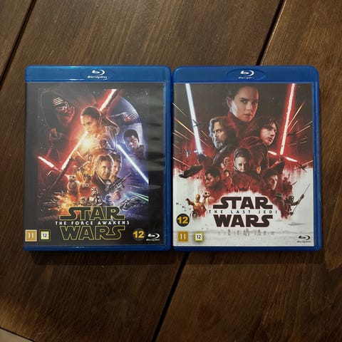 Star Wars elokuvia Blu-ray:nä. Kertaalleen läpi katsotut (pl. yksi vuokrapoisto), kaikki levyt moitteettomassa kunnossa. Kaikissa tekstitykset Suomi, Ruotsi, Norja ja Tanska.