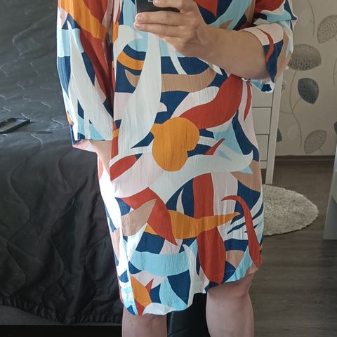 Nanso mekko, beige väri pohjalla. Koko 36. Monivärinen kuviointi tuo eloa asuun. Tupakoimaton koiratalous ja kulkeutuu mm. Kuopioon.