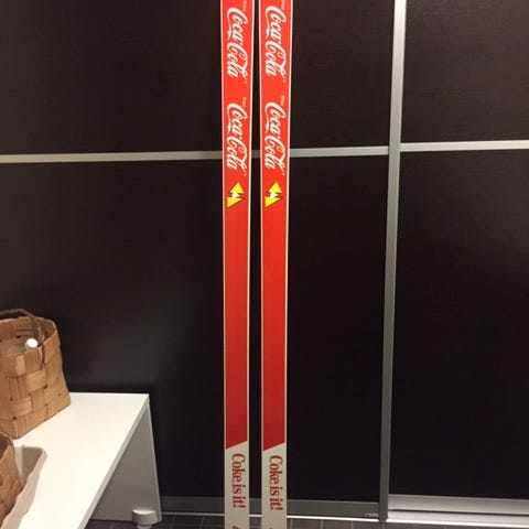 Myydään hyväkuntoiset Dynamic Coca Cola vintage sukset 185cm Atomic 747 siteet.