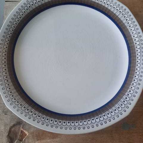 Myydään kuvan kolmiosainen Uppsala Ekeby Neptun sarjan kaksi tarjoilulautasta ja kaadin.