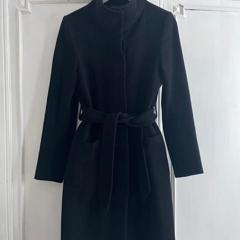 Filippa K:n musta villakangastakki. Ei vuorta, mutta tosi lämmin ja kevyt päällä. 100% villaa, joka ei ole nyppyyntynyt käytössä. Menee myös S kokoiselle. Ovh 420€