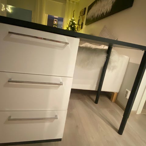 Tällaista ei kaupasta valmiina löydy. Itse tehty vankka ja korkeussäädettävä työpöytä. Suunniteltu pelikäyttöön, mutta pätevä muuhunkin. Pysyy hyvin paikoillaan kovemmassakin ratin väännössä.