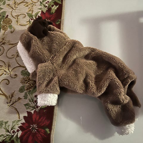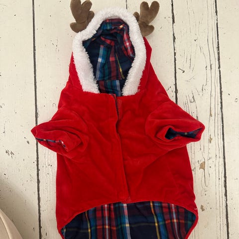 Kuvauksissa koiralla kerran päällä ollut poroasu. Koko 25