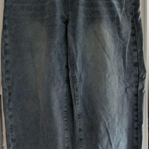 Koko: vyötärön leveys takaa mitattuna 50 cm, lahkeen pituus noin 67 cm ja takapuolen kohdalla leveyttä noin 72 cm. Made in China.
