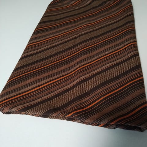 Kuvioitu ohut kangas monivärinen puuvilla. Kangas on valmistettu puuvillasta ja siinä on monivärinen ruutukuviointi, jossa esiintyy ruskean, vihreän ja turkoosin sävyjä. Sopii erinomaisesti sisustukseen, vaatteisiin tai muihin käsityöprojekteihin.