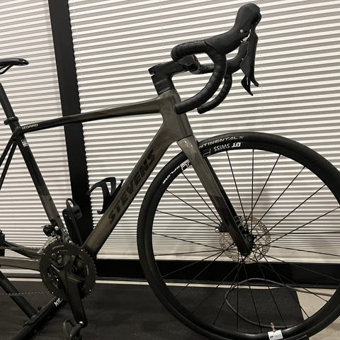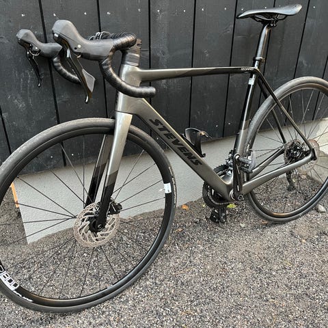 Hiilikuituinen Giant Connect satulatolppa, Fizik Arione satula, White stemmi ja G Connect ohjaustanko. Alkuperäiset ergo-lukkogripit.
