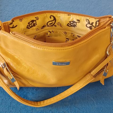 Käytössä ollut Brunelli käsilaukku. Materiaali pehmeää nahkaa tai keinonahkaa (ei varmuutta). Vetoketjusuljettava. Molemmilla ulkosivuilla vetoketjullinen sivutasku. Laukun sisällä sivuseinällä vetoketjullinen tasku ja matkapuhelintasku.