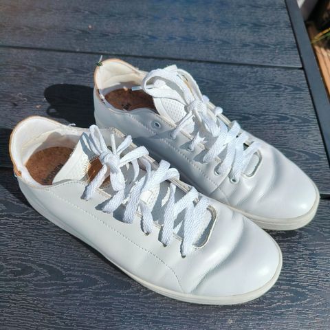 Woden valkoiset tennarit koko 40. Korkista tehty sisäpohja, joka tekee kengästä miellyttävän jalassa. Ostettu viime vuonna ja yksi kesä näillä kävelty, mutta raskauden jälkeen jääneet itselle liian pieniksi. Edelleen hyväkuntoiset ja siistissä kunnossa. En ole puhdistanut kenkiä, joten mahdollisesti putsaamalla saa vieläkin siistimmän näköiset.