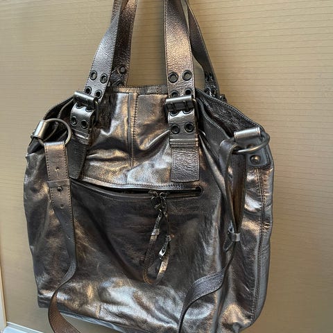 Myynnissä nahkalaukku, joka konmarituksen johdosta löysi tiensä tänne. Jäänyt käyttämättömäksi, koska… no, kuinka monta laukkua ihminen oikeasti tarvitsee? Vastaus: Vähemmän kuin mitä kaapista löytyy.