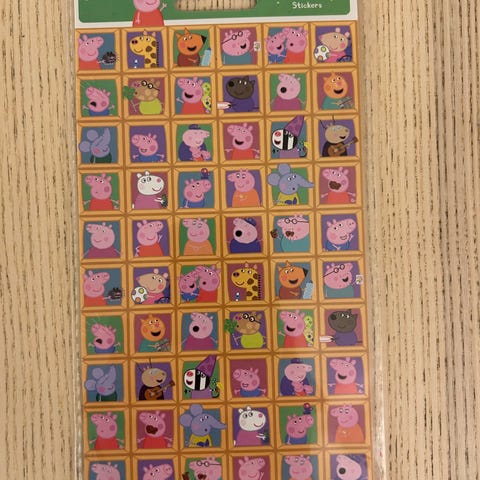 5 keskenään samanlaista arkkia paksuhkoja, muovisia Pipsa tarroja.