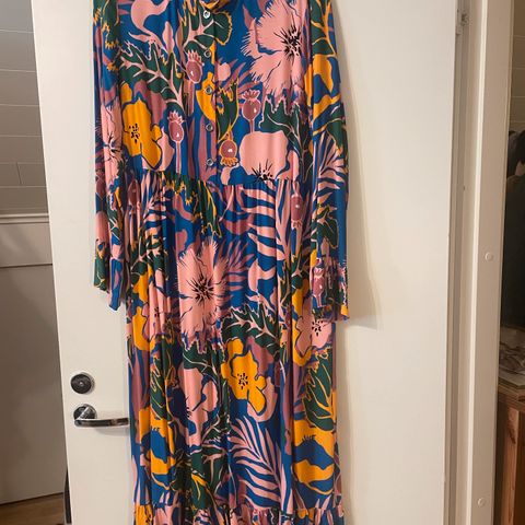 Suosittu mekkomalli Tuuva, viskoosia. Laskeutuu kauniisti. Säilytetty vaatekaapissa henkarissa, ei tuoksuja/hajuja. Siis uusi. Uusi maksaa liikkeessä noin 190e. Tästä hiukan edullisemmin. Kainalo kainalo 52cm. Musta pohjakangas jossa kauniita kukkia. Näyttävä mekko! Pidän itse jos ei mene kaupaksi. Nouto Vantaa Ylästö tai postitus.