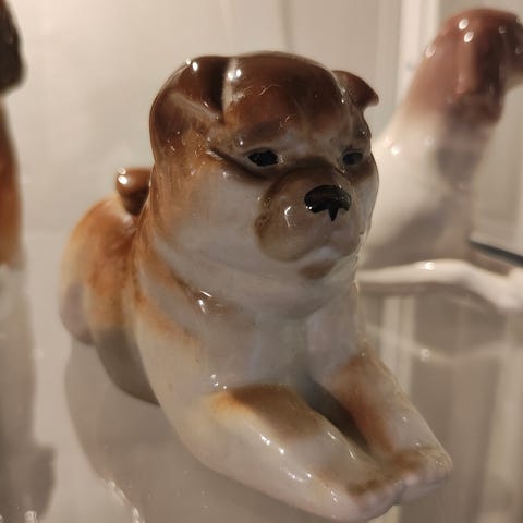Myydään kuvan ehjä ja siisti posliinikoira. Punainen made in ussr -leima pohjassa