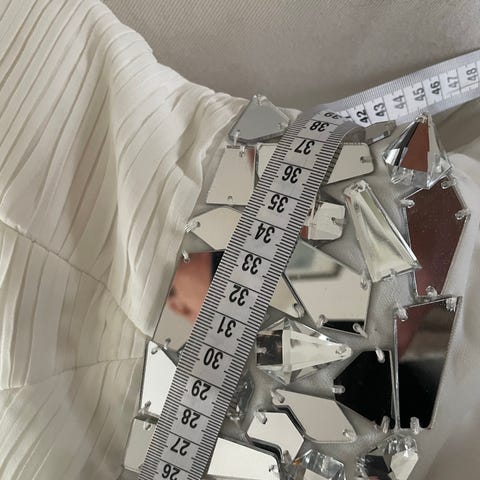 Kerran käytetty rippimekkona. Kaunis mekko, kuvat eivät oikein päästä oikeuksiinsa. Sopii isompirintaisellekin vaikka on olkaimeton mekko.