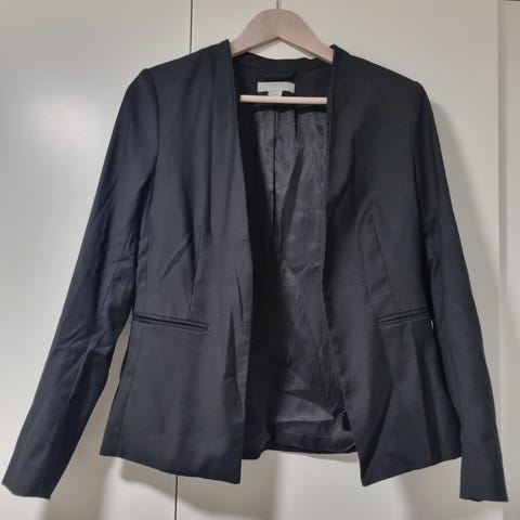 Pitkä ja edestä avoin kevyt jakkutakki sisäkäyttöön. Edessä kaksi taskuja. Sivuilla helmassa halkiot. Hihat ovat ommeltu käärityiksi.