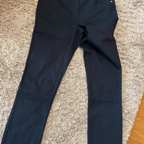 BikBokin siniset housut, vastaa hyvin kokoaan. Nappi- ja hakaskiinnitys vetoketjun lisäksi. Väri on ehkä jotain noiden kahden kuvan välimaastosta, taittaa sähkönsiniseen.