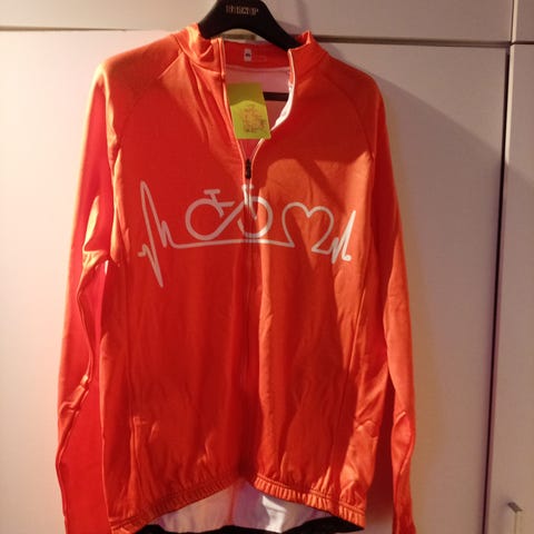 Vedenpitävä ja tuulenpitävä pyöräilytakki, koko S, rinnanympärys 105 cm, pituus edestä 63 cm, pituus takaa 73 cm.