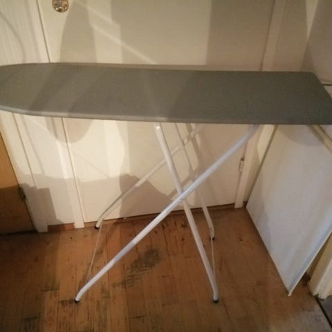 Silityslauta valkoinen sininen kuvio. Kompakti ja kevyt muotoilu, joka sopii erinomaisesti kotikäyttöön.