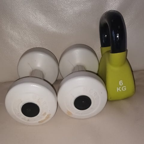 Myydään kuvnamukainen metallinen aito retro käsipaino 1,5 kg, väri sininen