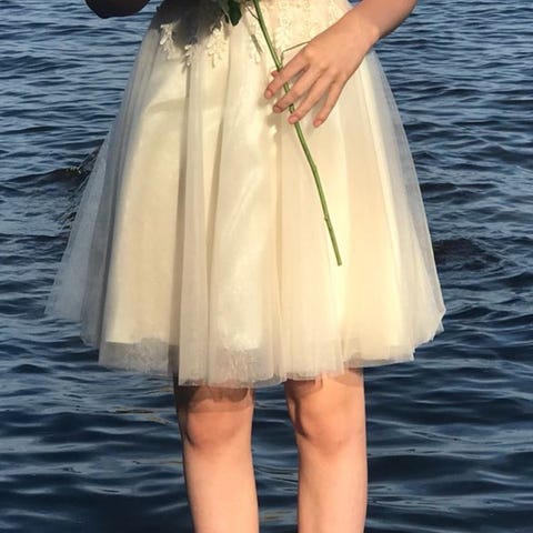 Kerran käytetty upea juhlamekko ostettu zazabellasta, esim. Rippimekoksi. Muutama helmi lähtenyt irti, mutta ei mitään näkyviä virheitä
