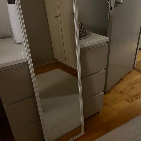 Myydään Ikean vartalopeili. Tarkemmasta mallista ei ole tietoa. Korkeus 160 cm ja leveys kapeimmasta kohdasta 20 cm.