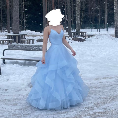 Ihana yksissä tansseissa käytetty tummansininen vanhojentanssimekko💙 Kokoa pystyy säätelemään selässä olevan nyörityksen avulla. Lisätietoja ja kuvia pyydettäessä!