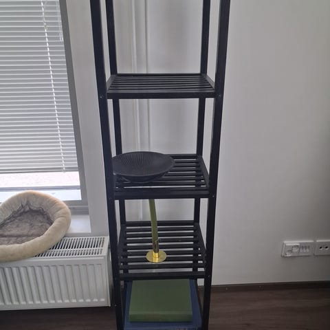 Hylly hyvässä kunossa. Se koostuu kahdesta talonmuotoisesta korista, jotka sopivat esimerkiksi pienten esineiden tai koristeiden näyttämiseen sisätiloissa