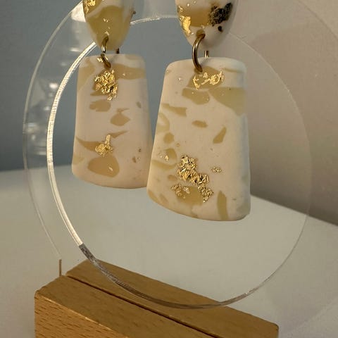 Upea ja laadukas polymeerimassasta tehnyt korvakoru lehtikullalla ✨