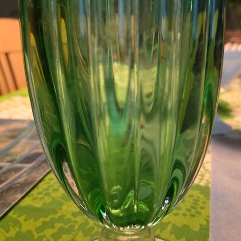 Myydään Armando Jacobinon suunnittelema kaunis taidelasimaljakko lilaa ja kirkasta lasia, pohjassa signeeraus A. Jacobino Oy Kumela.