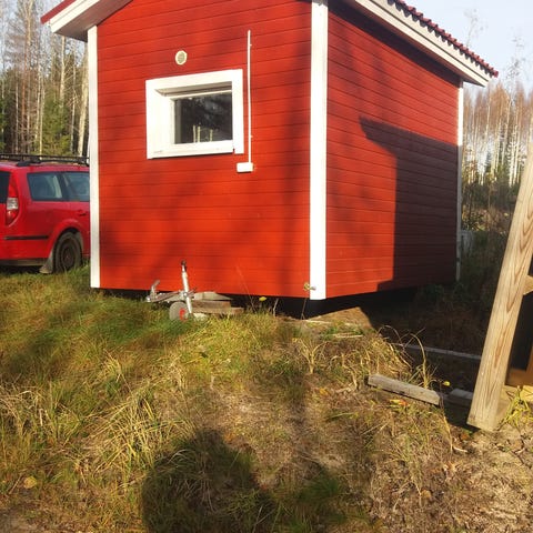 Kuvan mukainen siirrettävä pihavarasto. Leveys noin 220cm pituus noin 331cm. Varasto puolen sisä mitta 210x120 cm. Liiterin sisä mitta 210x195cm. Varastossa peltikatto, pitkät räystäät. Pystyy kuorma-auton nosturilla nostamaan kyytiin. Varasto on tehty viime syksynä ja sijaitsee Suolahdessa. Kaverin puolesta ilmoitan.
