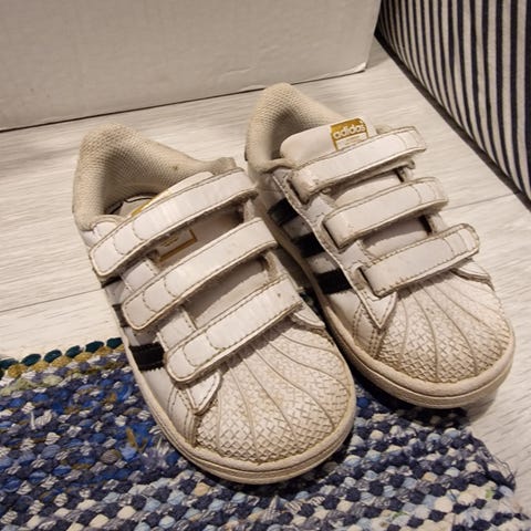 Myydään Adidaksen Superstar tennarit kokoa 24. Pientä käytön jälkeä näkyy, mutta yleisilme siisti.