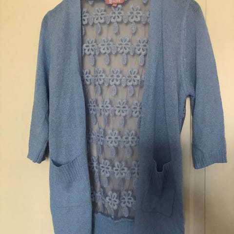 Tiara naisten neulemekko, koko S, sininen väri, valmistettu 100 % akryylistä. Mekossa on korkea kaulus ja koristeelliset neulekuviot.