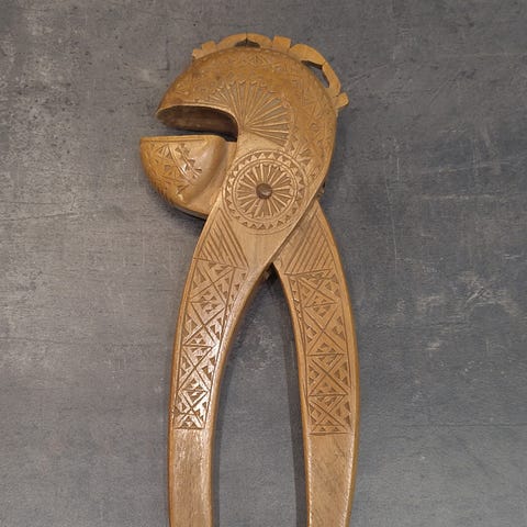 Joulu tulee,pähkinät valmiiksi. Metallinen,todella koristeellinen pähkinänsärkijä. Vintage ja painava. Postitus onnistuu, toimituskulut maksaa ostaja.