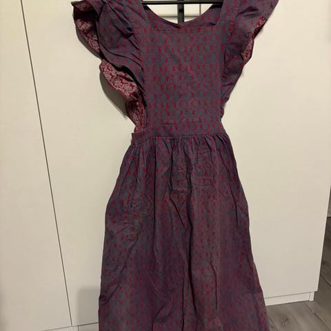 Ihana sinivalkoinen trikoomekko puhvihihoilla, voin laittaa mittoja tarvittaessa :)
