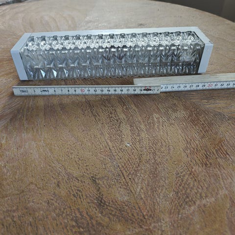 Yksi kristalli kiinnityskohdasta rikki, mutta tallessa.