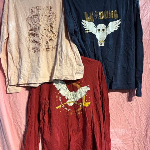 H&M Harry Potter lasten pitkähiha paita, koko 152. Paita on valkoinen ja valmistettu 100% puuvillasta. Sopii unisex-käyttöön. Paita on painettu Hogwarts-aiheisella kuvalla, joka sisältää neljän talon tunnukset. Soveltuu lapsille, joiden ikä on noin 10-12 vuotta.