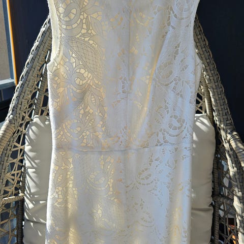 Myydään Seppälän kaunis valkoinen mekko koossa L. Tätä on pidetty vain kerran, kunnes jäi kaapin perälle väärän kokoisena.