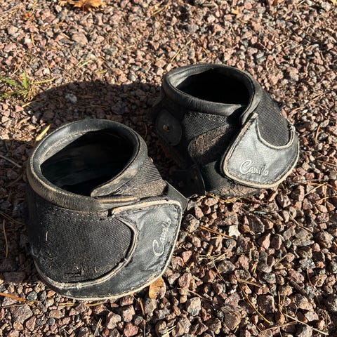 Myydään hyvin pysyvät ja kätevät lenkkarit! Näitä käytetty nastoilla ja ilman. Harmi vain kun varsan kaviot kasvaneet näistä yli. Koko 3.