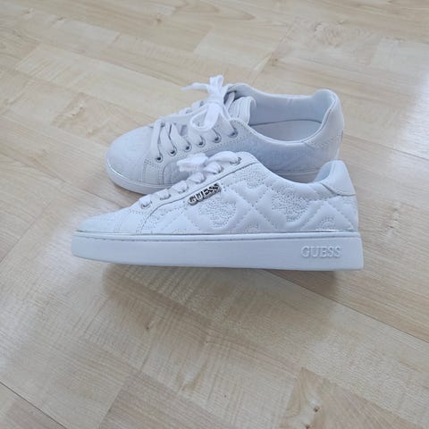 Guess Tennarit koko 36, vaaleanpunainen väri. Uudet, ostettu Yhdysvalloista. Tennarit ovat valmistettu kestävästä materiaalista ja niissä on valkoinen kumipohja. Malli on suunniteltu naisille. Kenkien päällä on Guessin logo ja kuviointi.