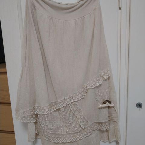 Noella midihame kokoa M. Kuminauhavyötärö, sivuilla taskut. Alushame, ei näy läpi. Uusi, laput kiinni. 100% puuvillaa.