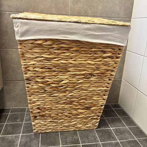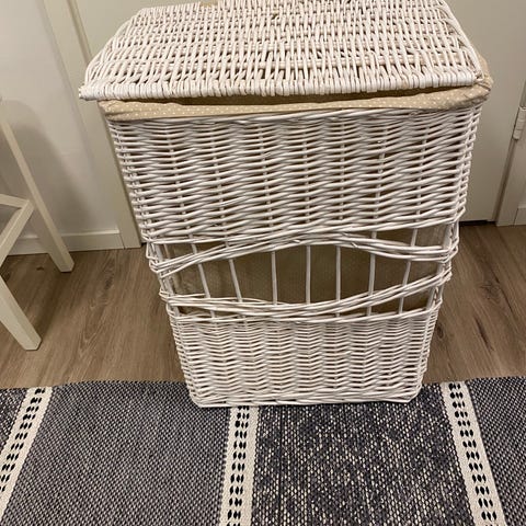 Myydään metallinen ovaalin muotoinen pyykkikori tarpeettomana pois. Korin mitat ovat; korkeus 59cm, leveys 40cm ja syvyys 30cm.