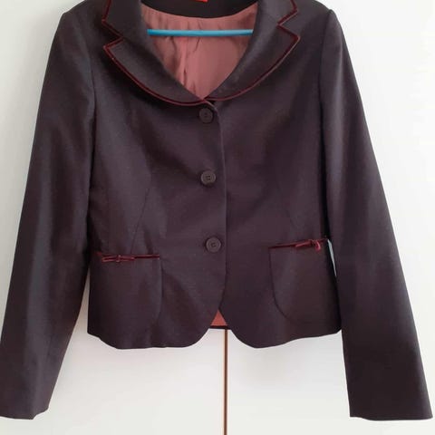 Kaunis sinivalkoinen jakku. Vastaa mielestäni parhaiten kokoa 40. Kainalosta kainaloon mitta 44cm. Käytetty mutta edelleen siisti, mukava vahva materiaali. Sisällä sininen vuori
