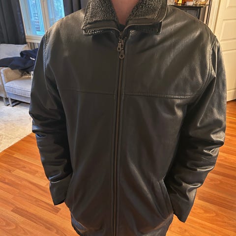 Laadukas musta pitkä nahkatakki. Mukavan tuntuista pehmeää paksua aitoa nahkaa. Erittäin siisti ja ehjä kunto vaikka ikää jo on.