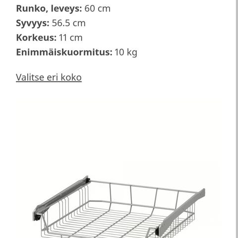 Ikean Utrusta sarjaa. Vahvat teräshyllyt kiskojen kera. Korien koko L43, 5 S 55, 5. Sopii 50 cm kaappeihin. Priima kunnossa, mutta itselle tarpeettomat. Vain nouto ja käteinen
