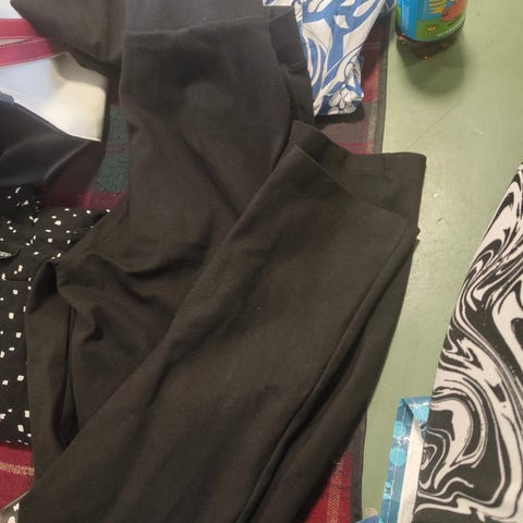 Kuvien mukaiset mustat housut jossa helmikoristelut sivuilla. Koko L. Materiaali; 95% polyesteri, 5% elastaani.