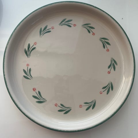 Pentikin Aino-sarjan vihreäreunainen piirakkavuoka. Halk. 29cm. Käsin pesty.