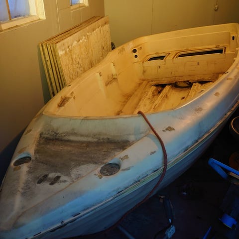 Kahvaohjattava tukeva moottorivene. Keltainen ulkoa, sisältä valkoinen. Laidassa paarteenkohdalla paikka, joka kaipaa maalia. Lähes kolhimaton pohja, kun siinä ehjä alkuperäinen gelcoat,