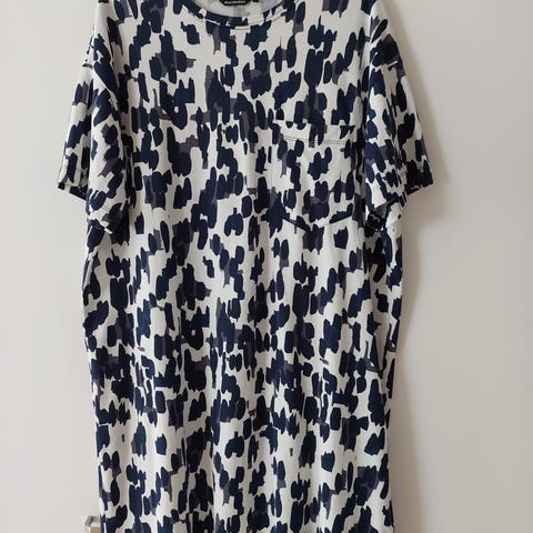 Tyylikäs, uutena ostettu Marimekon tunika koko S, hyväkuntoinen, muutamia kertoja käytetty. Huiveilla saat ilmettä hyvin muutettua. Etukappale on tavallaan irtonainen ja kaartuu pyöristetyllä helmalla takapuolelle, vähän A-linjainen. Kai-kai noin 47 cm, mutta joustaa. Nouto Ylöjärveltä tai lähetyskulut ostajalle.
