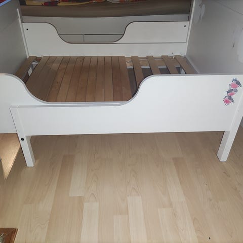 Kaunis sänky, pölyinen vaan varastosäilytyksestä.