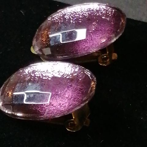 Myydään upeat, lasiset klipsikorvakorut, vintage. Mitat: kokonaiskorkeus 51 mm, leveys 17mm. Korvakorut ovat hyväkuntoiset.